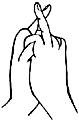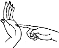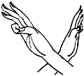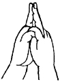 虛心合掌,兩小指彎曲置于掌中,以兩拇指傾壓兩小指之甲,兩無(wú)名指、中指、食指各自豎起,指端相合,各指微微的相去。 |