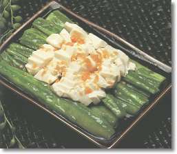 配料:用料:絲瓜或其它蔬菜300克,嫩豆腐2件(重約400克),煮熟甘筍剁細2湯匙,姜1片 調味料:鹽1/3茶匙,水2湯匙