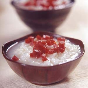 生姜大棗粥:鮮生姜或干姜6—9克,粳米或糯米100—150克,大棗2—4枚。將生姜洗凈切碎,與米、棗同煮成粥。它有溫胃散寒、溫肺化痰的作用,但陰虛者或孕婦慎食。