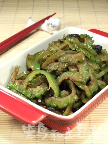 制作方法: 做法: 1. 把苦瓜剖開(kāi),去籽,切片,灑上鹽抓勻,腌一會(huì)兒,把腌出的水?dāng)D干,這樣處理過(guò)的苦瓜就不會(huì)太苦了。 2. 尖椒洗凈切成圓圈。 3. 熱鍋涼油,先放入豆豉炒香,再放入苦瓜和尖椒,炒熟即可。豆豉本身是咸的,苦瓜也是用鹽腌過(guò)的,所以一般來(lái)說(shuō)不需要再加鹽了。 由于染上了豆豉的顏色,這菜雖然看著賣相不太好,但尖椒的辣味和豆豉的香味足以掩蓋苦瓜的苦味,對(duì)于不愛(ài)吃苦瓜又喜歡吃辣的人來(lái)說(shuō),這種做法的苦瓜是最容易被接受的。