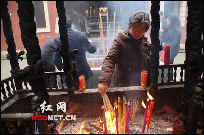 一位婦女在大興禪寺敬香600)this.style.width='600px';" border="0" />在大興禪寺敬香的人人絡繹不絕3月15日(農歷2月19),在傳統民俗中是觀音菩薩生日,上大興禪寺">