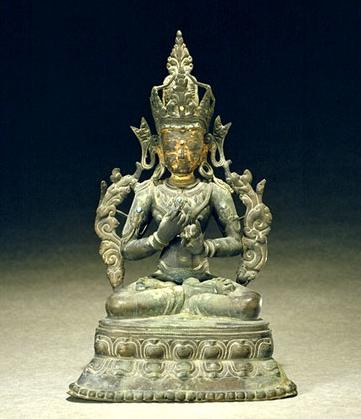 元,毗盧遮那佛像,黃銅,通高36cm。清宮舊藏。?">